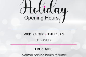 We will be closed over the holiday period from 24 Dec to Jan 1.